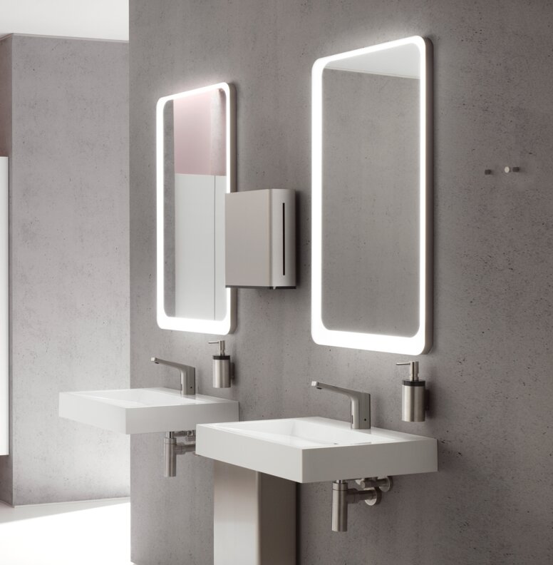 Blendfreie LED-Spiegel leuchten das Gesicht Ihrer KundInnen sowie bestimmte Bereiche des nachhaltigen Badezimmers ideal aus. Der hochwertige LED-Spiegel erhellt das Spiegelbild gleichmäßig. Die LEDs befinden sich hinter einem satinierten Spiegelrand, der die Farben unverfälscht wiedergibt. Das Licht des Spiegels ist warmweiß und sorgt für ein angenehmes Ambiente im Bad.