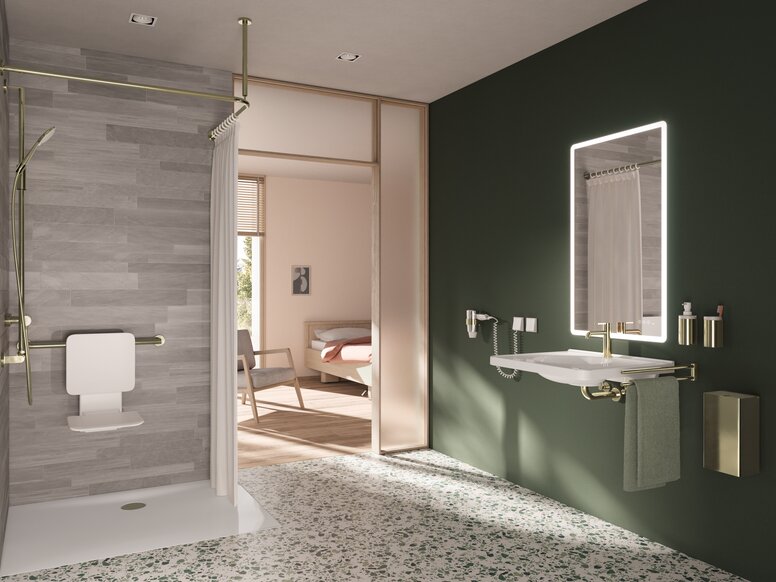 HEWI bietet neue Oberflächen im umweltschonenden PVD-Verfahren für höchste Individualität im Badezimmer.