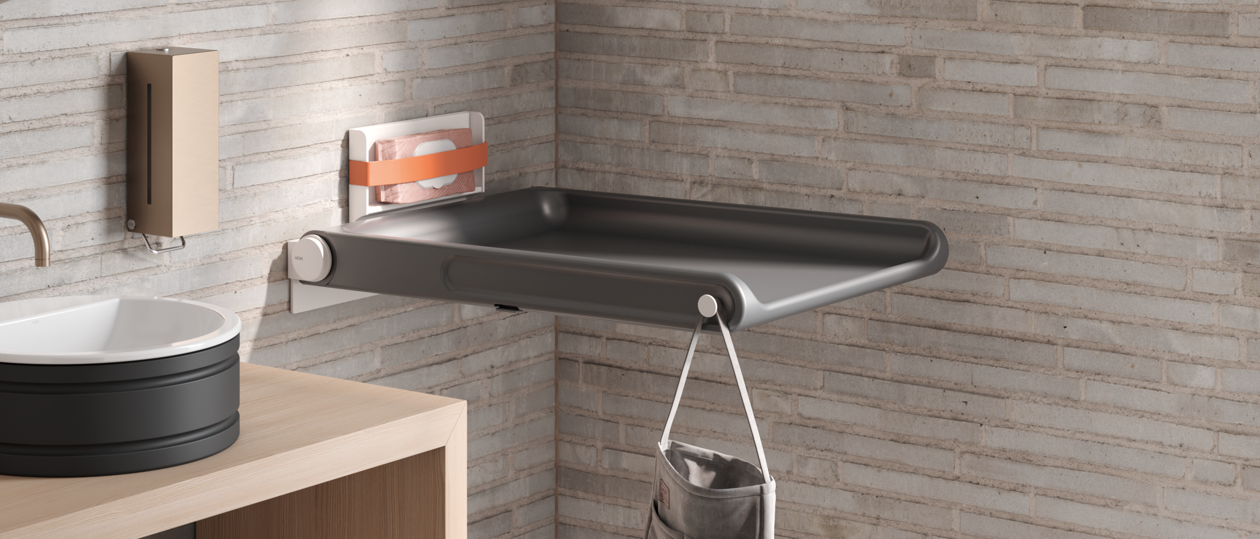 When everyday practicality, clear design, and hygienic safety come together, products are created that noticeably ease daily routines. A prime example is the new baby changing table developed by HEWI in collaboration with Holscher Design. The wall-mounted design with controlled lowering is particularly well suited for public and semi-public spaces with limited room. Thoughtful details enhance comfort: integrated side hooks provide space to hang bags or jackets, while a practical clamping compartment on the back keeps wet wipes and other essentials within easy reach. The non-porous, antibacterial surface ensures easy cleaning and meets the highest hygiene standards. The result is a product that genuinely simplifies everyday situations – safe, hygienic, and user-friendly by design.