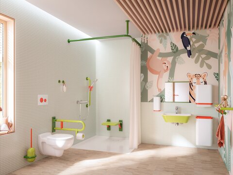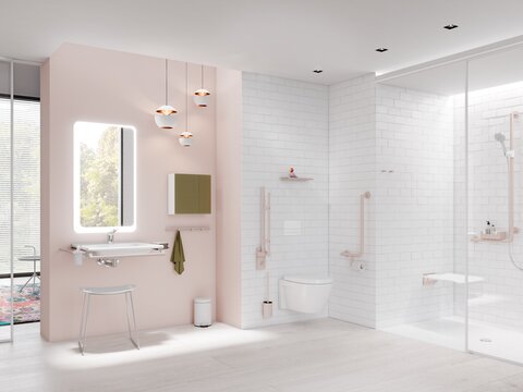 Les salles de bains modernes des hôtels doivent offrir un maximum de confort à tous les clients, quelles que soient leurs conditions physiques. Les douches de plain-pied, les barres d'appui ergonomiques peuvent être intégrés avec style dans l'équipement des salles de bains d'hôtels et garantissent des possibilités d'utilisation illimitées.