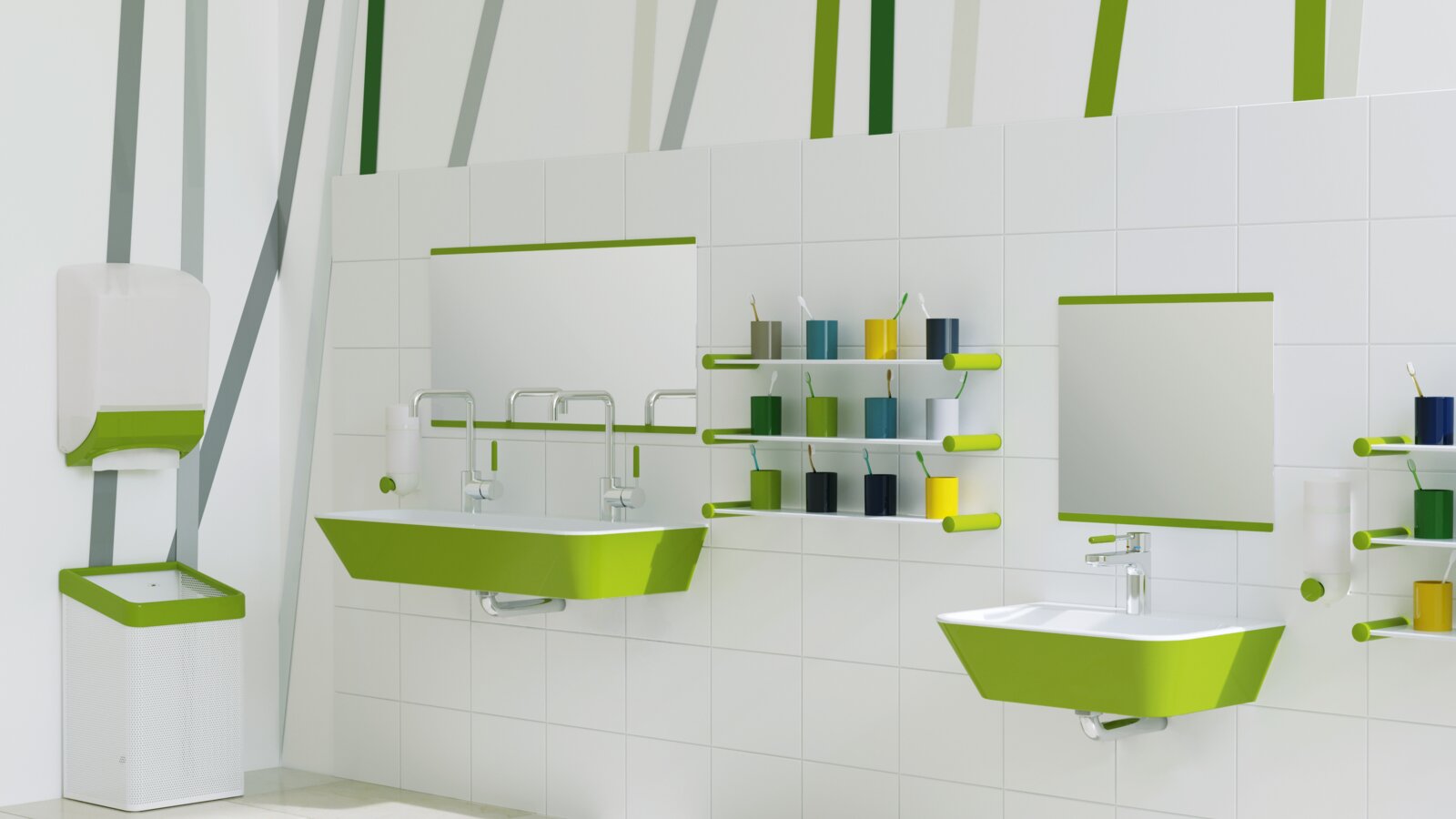 HEWI propose aux écoles et aux jardins d'enfants l'offre adéquate pour répondre aux exigences élevées en matière d'hygiène de manière adaptée aux enfants.