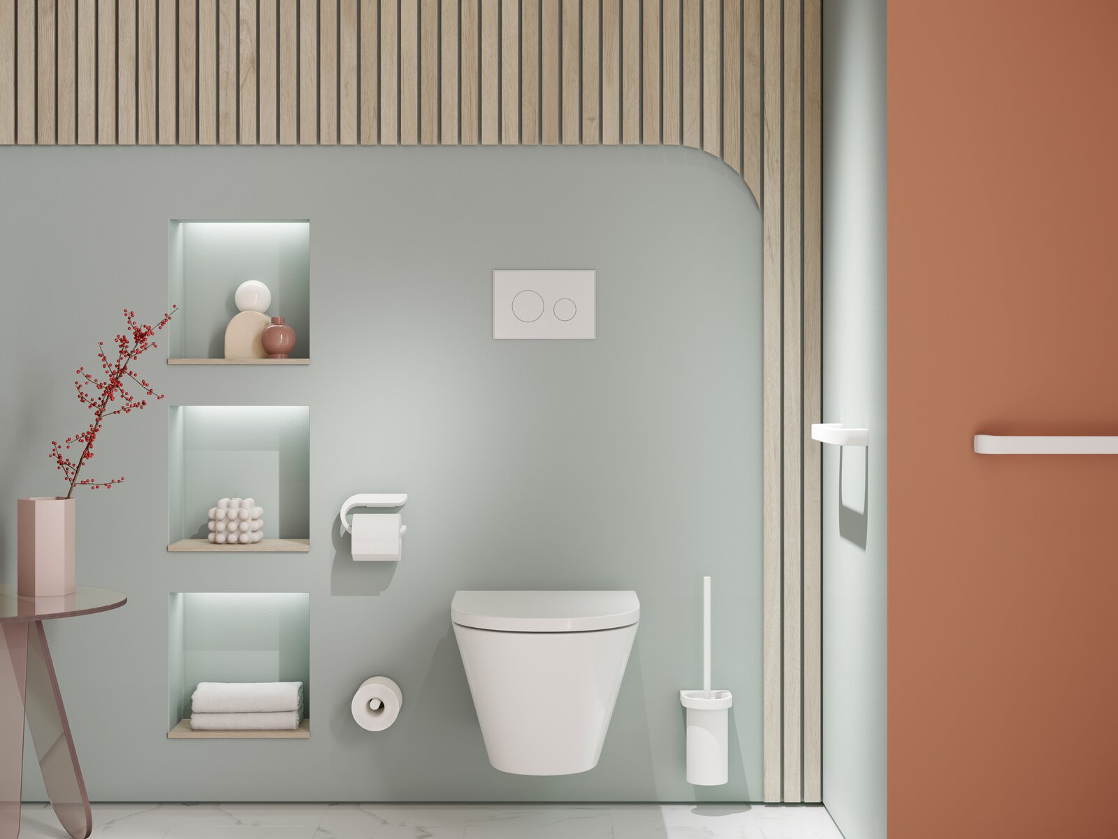 HEWI apporte plus de légèreté dans la salle de bain - les accessoires du système 800 bénéficient d’un coup de fraîcheur avec des surfaces thermolaquées en blanc mat et noir mat.