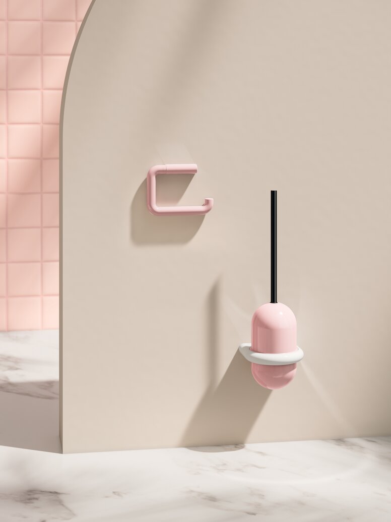 La couleur rose est synonyme d’optimisme, de confiance en soi et d’espoir. En architecture, elle est de plus en plus perçue comme une couleur qui fait appel aux émotions et produit de multiples effets. Selon l’environnement, le rose peut avoir un effet stimulant et inspirant ou peut apporter une touche apaisante et harmonisante. Dans la collection Barbie x HEWI, ce choix de couleur marquant s’associe au design minimaliste et fonctionnel de HEWI pour former une combinaison expressive et innovante.