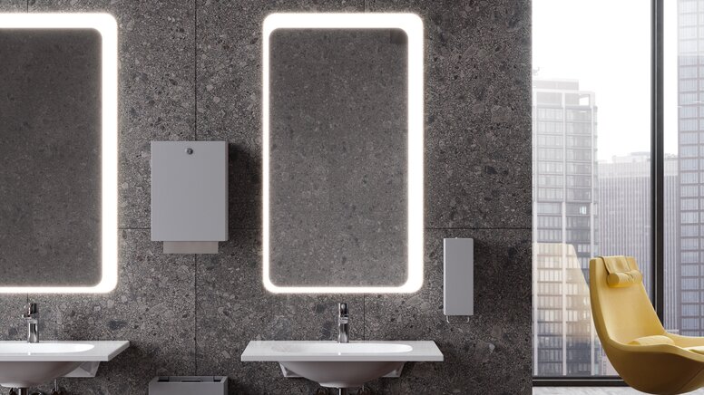 Il existe un choix de modèles avec revêtement par poudre dans des tons noirs, gris et blancs, ainsi que des variantes en acier inoxydable. Les distributeurs se caractérisent par leur robustesse et sont parfaitement adaptés à une utilisation dans des locaux sanitaires très fréquentés. Une grande partie des distributeurs est disponible en version capteur, en plus des versions à commande manuelle. Des distributeurs de savon et de désinfectant aux combinaisons d'hygiène de différentes tailles en passant par les distributeurs de serviettes en papier et les poubelles, HEWI propose une gamme cohérente et fonctionnelle qui se caractérise également par les plus hauts standards de design