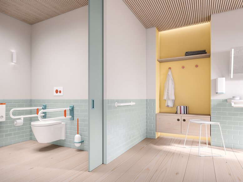 HEWI propose des séries et des systèmes pour les soins professionnels qui allient une haute qualité aux principes de la Healing Architecture. Des matériaux solides et une conception conforme aux normes et accessible à tous garantissent des équipements sanitaires et des solutions de garnitures qui conservent leur fonctionnalité et leur esthétique même en cas d’utilisation intensive - pour un équipement durable qui soutient de manière fiable le quotidien des soins.