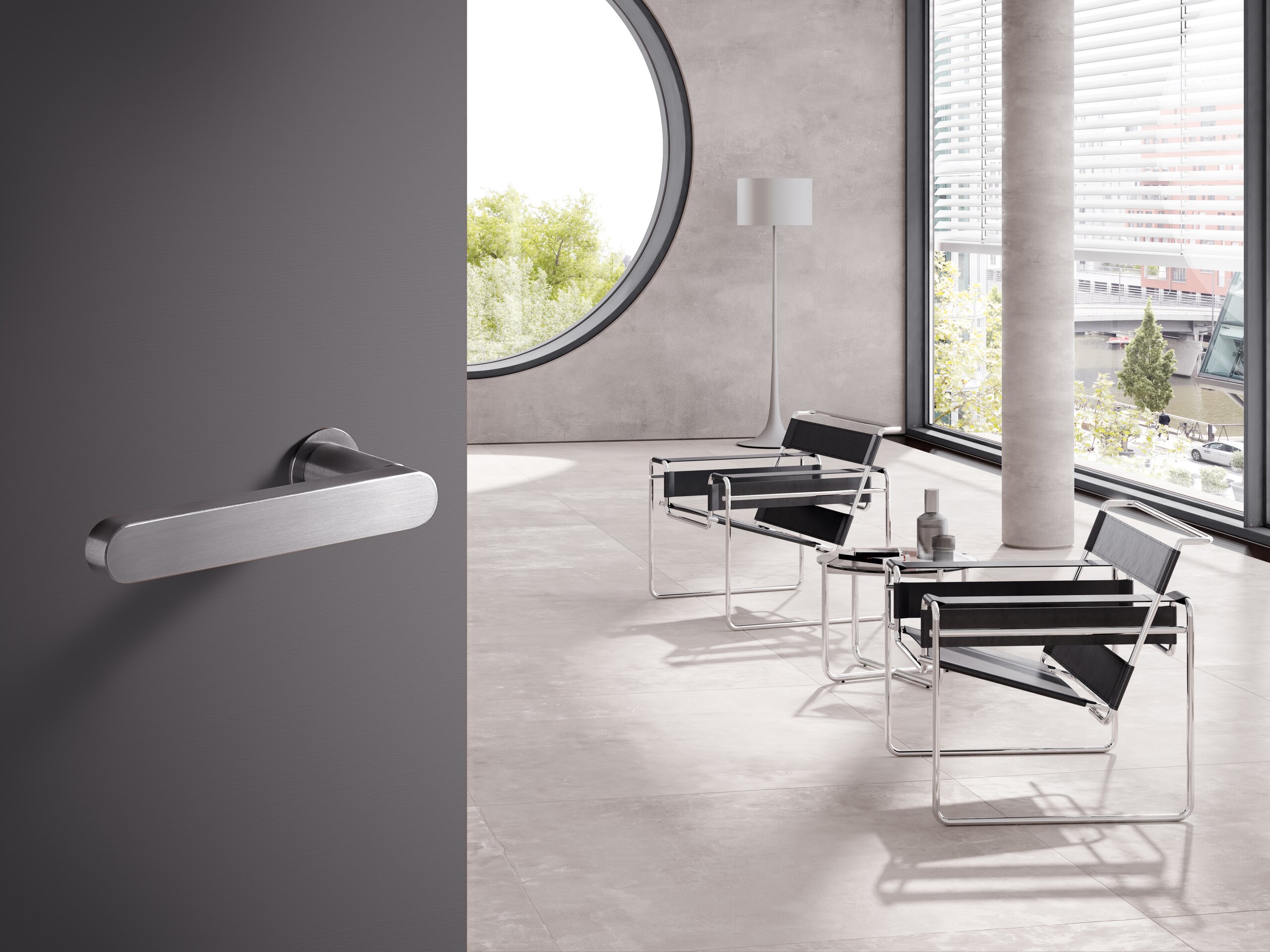 Avec la série 270, en revanche, nous traduisons le rayon de la fixation de la béquille dans la surface de la poignée. Cela augmente la complexité de la conception. Néanmoins, la forme convainc par sa conception claire. Le bord périphérique confère à la béquille un degré élevé de précision et de valeur. La série 270 en acier inoxydable est de conception modulaire, c'est-à-dire qu'elle peut être étendue pour former une plus grande famille de produits et offre d'autres possibilités d'individualisation. Cela rend le 270 très polyvalent - il peut être intégré dans pratiquement n'importe quelle pièce et n'importe quelle architecture.