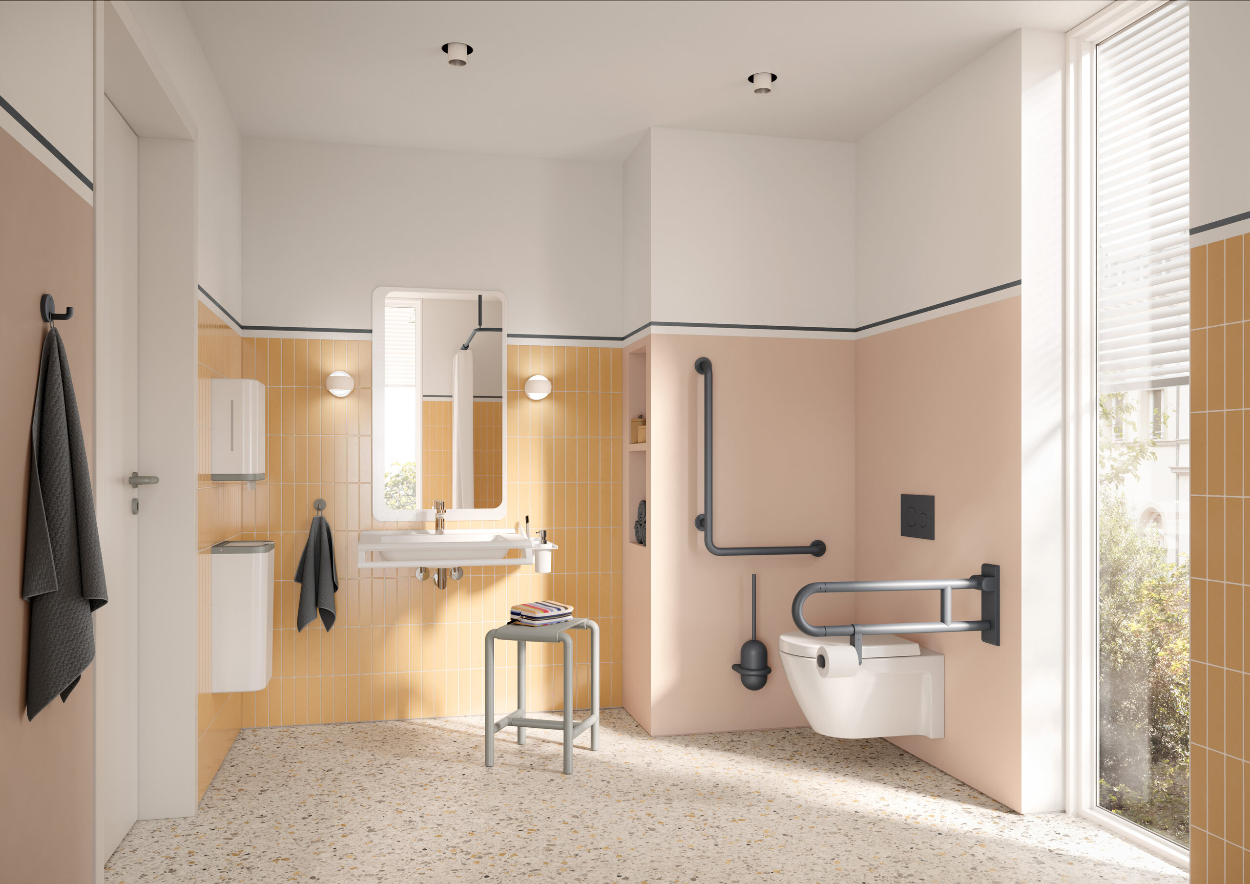 L'icône est disponible dans toutes les couleurs HEWI et dans trois combinaisons tricolores attrayantes qui confèrent à la série un aspect différent et séduisant.