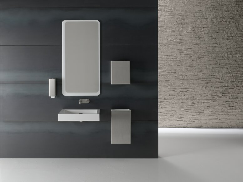 La série sanitaire 805 a été développée pour être utilisée dans les espaces publics. Il se caractérise par une grande fonctionnalité.Par exemple, des indicateurs de niveau sont intégrés dans les produits de distribution pour faciliter le stockage des consommables tels que le savon ou les serviettes en papier.Le choix des matériaux et la conception simplifient le nettoyage des produits. Des détails bien pensés, tels que des distributeurs verrouillables ou des fixations dissimulées, protègent contre le vol et le vandalisme
