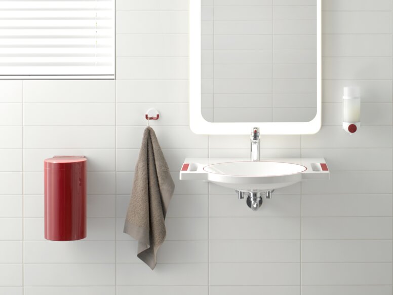La modularité du système permet d'équiper tout ou partie de l'espace sanitaire, en commençant par les accessoires classiques, en passant par les produits de confort, jusqu'aux produits pour les zones normalisées et accessibles aux personnes à mobilité réduite.