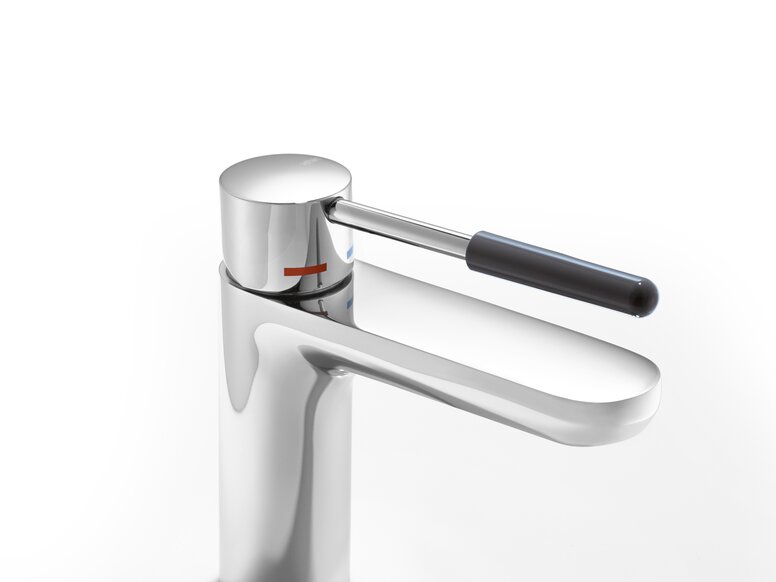 L'élément de poignée coloré peut être conçu avec un contraste élevé - il y a un choix de 16 couleurs HEWI. Il est fabriqué en polyamide et est agréable à prendre en main.
