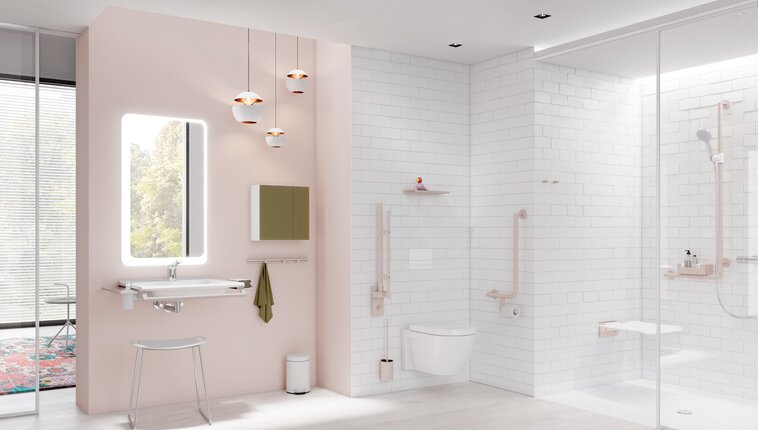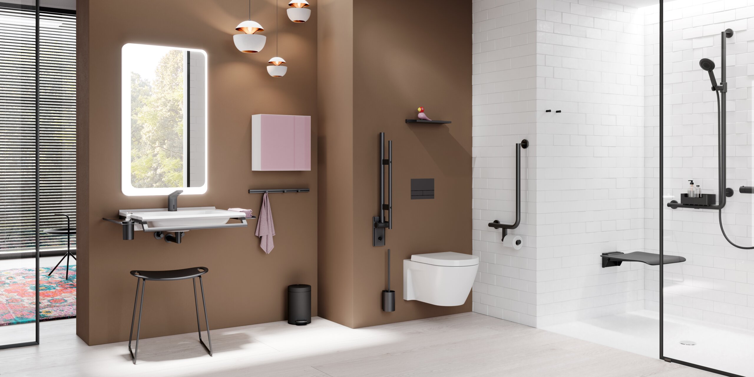 Le système 900 est la réponse aux exigences complexes des salles de bain adaptées aux personnes handicapées. Pensés jusque dans les moindres détails, les produits convainquent par leur fonctionnalité, leur qualité durable, leur technique de montage ingénieuse et leur conception hygiénique.