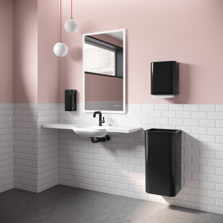 Dozowniki z połyskiem Serii 477/801 są obecnie dostępne w kolorach czarnym i białym z elementami ramkiami w kolorze różowym. Oba warianty kolorystyczne uzupełnią popularną Serię produktów sanitarnych o wyraziste możliwości aranżacyjne – od klasycznej elegancji po nowoczesne akcenty.